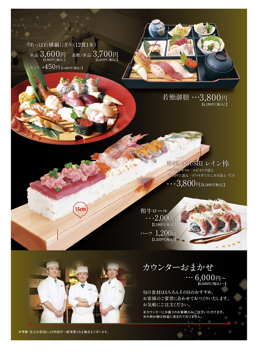 気楽に親しみやすい雰囲気で在りながらも、伝統的な江戸前寿司の技術でしっかりと握った上質な鮨で、舌の肥えた地元のリピーター様にも常に新鮮な驚きと心に残るひとときを。もてなしに対する心意気は、食のみならず、店のいたるところに表れている。