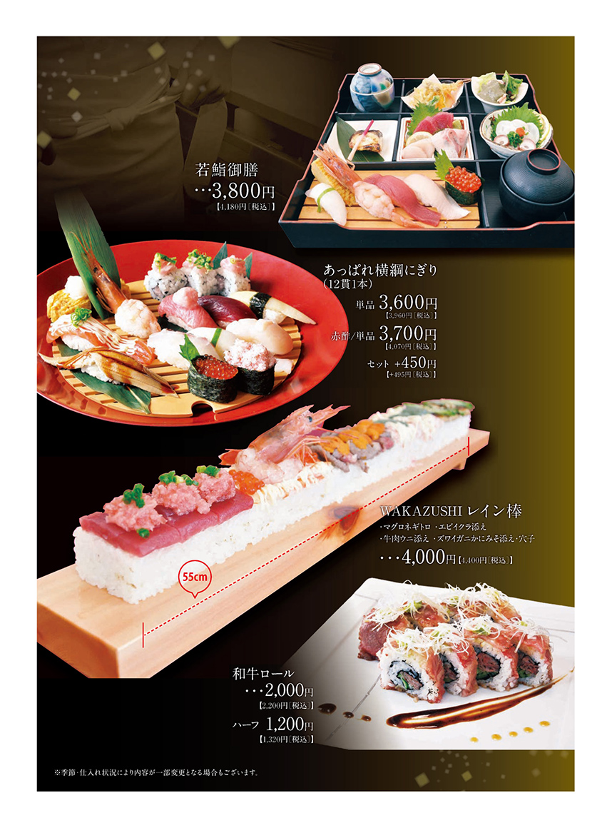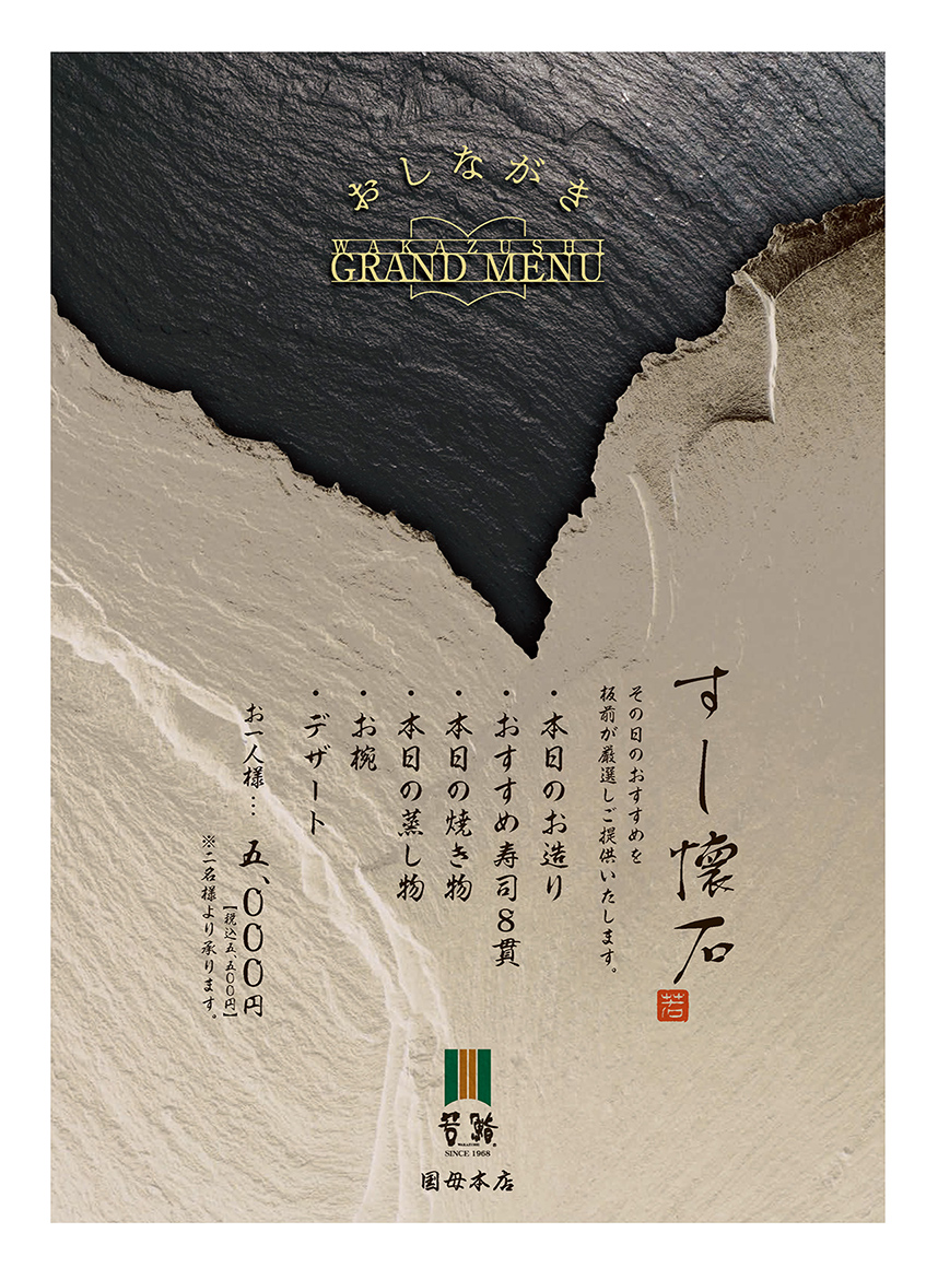 鮨を活かすは握り方次第。若鮨の握りは一貫ずつ個性があって、いずれも主役。人肌を保つことに神経を配りながら、1本(二升)のシャリを丁寧に握り、ネタをのせる。「握る」という所作には、伝統に敬意を示す若鮨の心技体が詰まっている。