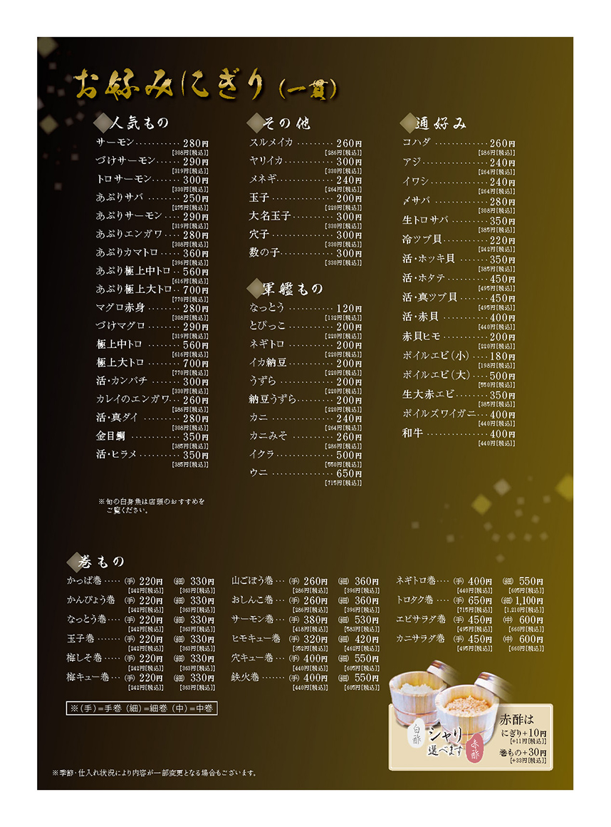 気楽に親しみやすい雰囲気で在りながらも、伝統的な江戸前寿司の技術でしっかりと握った上質な鮨で、舌の肥えた地元のリピーター様にも常に新鮮な驚きと心に残るひとときを。もてなしに対する心意気は、食のみならず、店のいたるところに表れている。